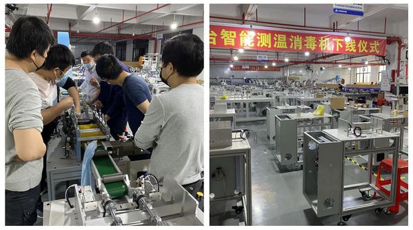 随着疫情的不断趋好,卢勇很快意识到,测温消毒将是各个企业复工复产的第一道“安全关”,于是,他申请返回中山,并在隔离的14天里,争分夺秒,带着他的团队立刻着手策划和研发测温消毒设备。