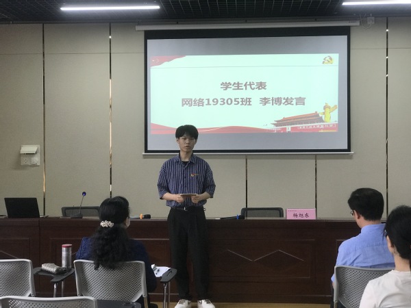 网络19305班的李博作为学生代表发言