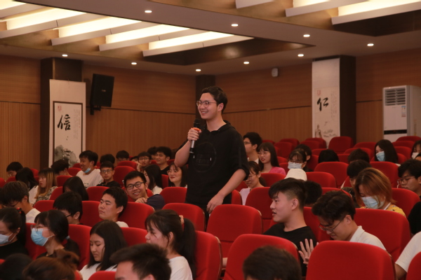 两位主讲人用亲身经历和故事,讲述自己作为学生干部的收获和成长,活动现场传来阵阵笑声和掌声。