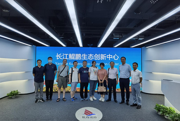 邓小飞一行首先来到长江鲲鹏生态创新中心,该中心位于武汉东湖新技术开发区未来科技城,由武汉市与华为技术有限公司共同建设运营,2020年9月1日正式启用,中心依托武汉市鲲鹏产业发展政策,联合政府、高校、企业科研院所等产业力量,共同构建开放的鲲鹏软硬件生态和联盟,促进操作系统、数据库、中间件、行业应用等软件体系向鲲鹏软硬件生态迁移,助力武汉数字经济跨越式发展。
