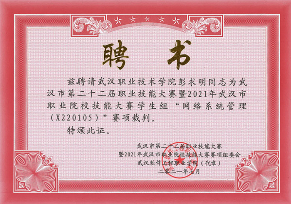 计算机学院彭求明老师被聘为“网络系统管理”赛项裁判