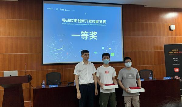 (通讯员 胡斌) 9月26日,由全国高等院校计算机基础教育研究会主办,全国高等院校计算机基础教育研究会高职计算机与电子商务专委会承办的首届移动应用创新开发技能竞赛在深圳信息职业技术学院落下帷幕,我校计算机技术与软件工程学院移动19302班的陈佳俊摘得冠军,指导教师胡斌获“优秀教师奖”。