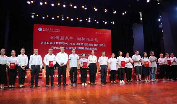 (通讯员 邵冲)为贯彻落实全面从严治党要求,拓展党史学习教育成果,增强广大党员干部的党性观念、纪律意识、法治思维。9月30日下午,武汉职业技术学院2021年党内法规和国家法律法规知识竞赛决赛在关山校区德礼堂举行,计算机学院分党委派出杨明、毕忠宜、刘晓娇三位老师组队参加比赛,现场有400余名师生代表到场观摩比赛。