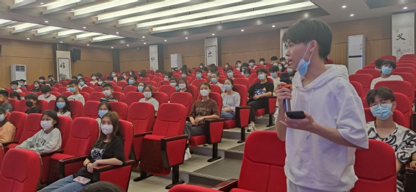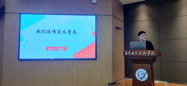 武职网讯(通讯员 毕忠宜)5月7日晚,计算机技术与软件工程学院“百生讲坛--倾听来自朋辈的声音”第18期暨2022年入党积极分子见面会在凌峰楼C11报告厅顺利开讲。该院中共预备党员、2021年“五四青年标兵”、网络19307班贾奥成作为主讲嘉宾,以《我们这样定义青春》为题,分享他在武职的成长故事。