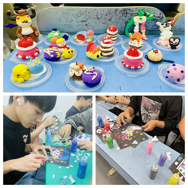 计算机学子体验沙画涂色、黏土制作心理减压活动