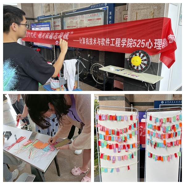 5月23日,计算机技术与软件工程学院“从心出发,解你之忧”主题活动在凌峰楼A座大厅举行。学子们纷纷书写心愿卡片,寄语大学生活,将烦心事写在气球上,并邀请好朋友通过投掷飞镖的方式刺破气球,以释放焦虑、舒缓压力。