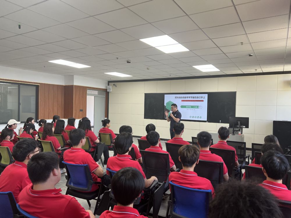围绕习近平总书记关于推进科技自立自强重要讲话精神,信创学院分党委副书记丁云栋结合信创学院背景,从信息安全的概念、类型、在军事和日常生活中的应用,以及信息安全核心技术等方面,通过现实案例,做了详细讲解,激励学生努力成长为信息技术应用创新专业领域优秀人才。