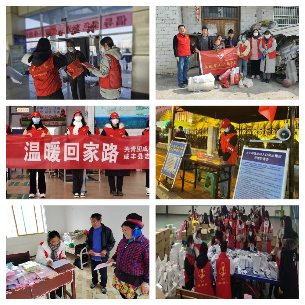 信创22312班董艳林在的家乡党群服务中心进行了清扫社区和防诈骗宣传工作。信创22302班刘恋参加了百子堂社区“暖冬行动”,为小区的居民们发放春节物资。信创22302班汪婧荷在随州市应山航空路口配合警察维护交通秩序,对不走斑马线、乱闯红绿灯、随意丢弃垃圾、随便停车等不文明行为进行劝导。王成英加入到了挖掘、保护、传承和弘扬羊先羊告村锦鸡民族文化队伍中,还为外出务工人员分发防疫药物。安全21304班向谭蓉在咸丰县客运站参加“青春志愿行,温暖回家路”志愿服务。安全21302班周金圆跟随义工们一起走访麻城特殊家庭,为困难群众送去社区慰问物资,他们使冬日里那份互助的温暖直抵人心。