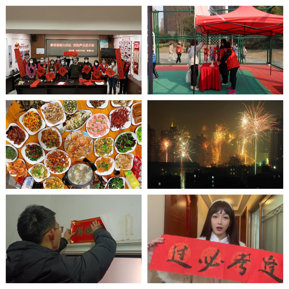 信创22304班刘茂参加了武汉市洪山区武丰佳园社区举办的元宵敬老活动。信创22306班毛星蕊参加了定兴县黄金台广场举办的传统花会表演志愿服务。安全21303班杜宫利男参加了承德市双桥区引领社区“新春祝福入社区 党的声音进万家”承德市书法名家送春联活动,他说:“此次活动让我学习到了春联的对韵、历史、民俗等内容,充分感受到中国传统习俗的魅力。”