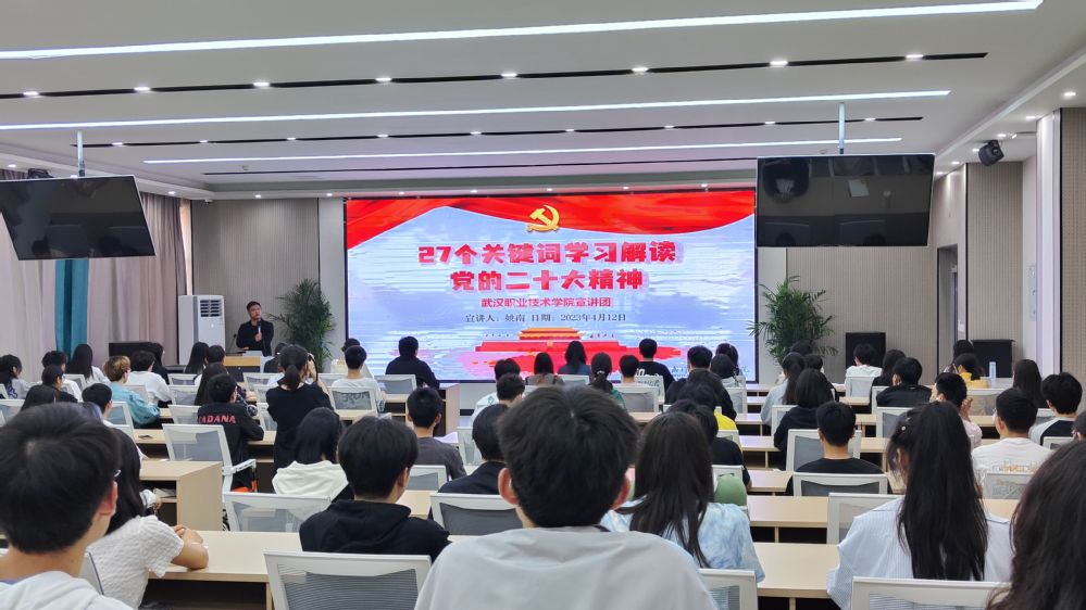 武职网讯(通讯员 姚南)4月12日下午,信创学院举办学习党的二十大精神专题辅导报告会。学校青年宣讲团成员、信创学院分团委书记姚南以“27个关键词学习解读党的二十大精神”为题,解读党的二十大报告的丰富内涵和历史性意义。信创学院各班级主要学生干部,分团委、学生会骨干成员100余人参加了此次报告会。