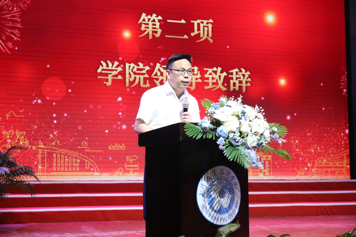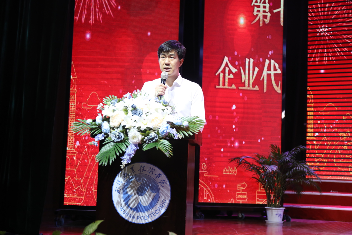 中软国际教育科技集团湖北区域总经理周星作为企业代表发言。他鼓励全体新生要不懈提升技术技能水平,努力成为有理想守信念、懂技术会创新、敢担当讲奉献的行家里手、大国工匠。