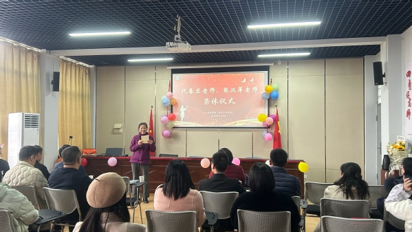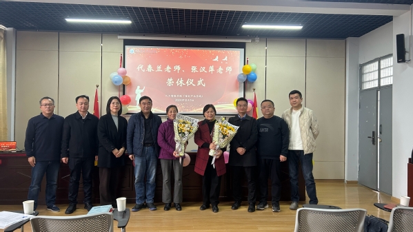 仪式上,武静宣读了《致退休教职员工的慰问信》,代表全体教职工向代春兰、张汉萍表达真挚慰问。陈绍华、杨忠旭分别代表组织部、校工会向她们表达崇高敬意和深深祝福。人工智能学院(信创产业学院)副院长邓小飞为两位教师送上鲜花。