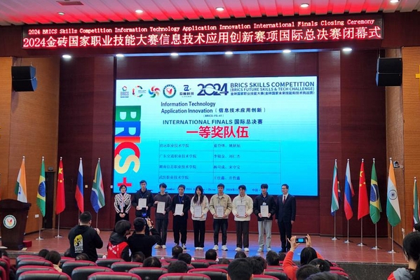 新闻网讯(通讯员 陈豪)12月21日至22日,2024年金砖国家职业技能大赛信息技术应用创新赛项国际总决赛在清远职业技术学院举行。武汉职业技术学院计算机应用技术专业学生王佳鑫、井哲鑫勇夺国际总决赛一等奖,陈豪、王瑞梅荣获“优秀指导专家”称号。