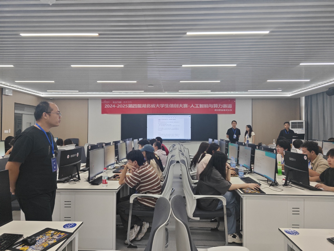 比赛期间,湖北省高等教育学会会长周应佳莅临指导决赛工作,人工智能学院(信创产业学院)领导班子成员陪同调研。