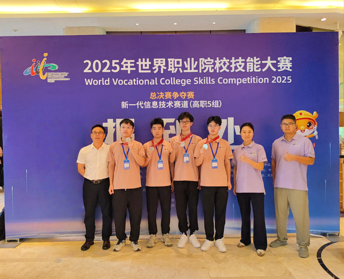 在9月8日至12日举行的新一代信息技术赛道(高职组)总决赛,围绕人工智能、大数据等前沿领域展开巅峰对决。指导老师梁莎、陈丹带领学生朱军旗、孔逸霞、万志、周俊杰一路过关斩将,以专业的技术功底与创新的解决方案斩获金奖;窦艳艳、郑凯老师指导的黄琳炜、吴正宇、张知博、李佳杰学生团队同样表现出色,荣获大赛银奖。
