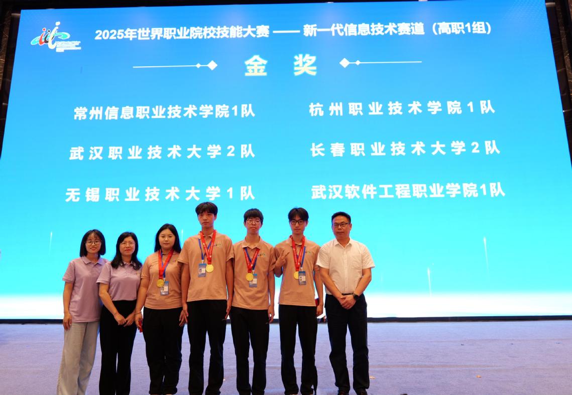 新闻网讯(通讯员 肖渝琪)近日,2025年世界职业院校技能大赛总决赛争夺赛多项赛事圆满落幕。武汉职业技术大学人工智能学院(信创产业学院)学子奋勇争先、连创佳绩,在新一代信息技术赛道(高职组)中勇夺一金一银,在人工智能赛道(高职组)总决赛中勇夺银奖。