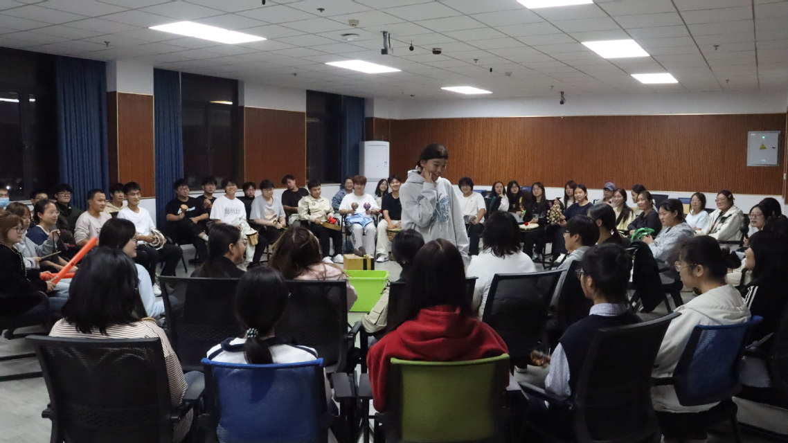 为进一步点燃现场气氛,张杨老师设计了一个别具一格的游戏——根据声调高低寻找彩蛋。当鼓声低沉时,寻找者需远离彩蛋;而当鼓声高亢时,彩蛋的踪迹便逐渐显露。这一独特的互动形式迅速打破了参与者之间的拘谨与隔阂,先是勇敢的同学试探性地伸出手,随后更多人纷纷加入,整个空间仿佛被鼓声注入了无限活力。这场游戏展现了音乐疗愈的非凡魅力,让同学们深刻体会到:快乐如同那枚隐藏的彩蛋,需要主动去寻找,但最终总会以意想不到的方式降临。