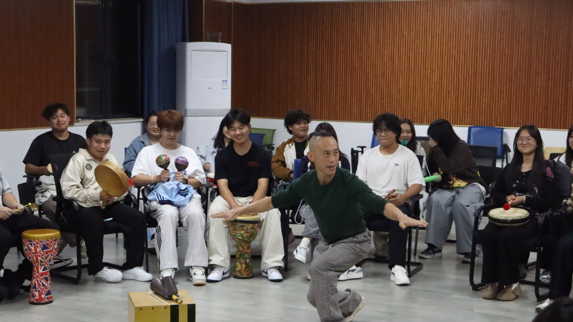 学生次仁顿珠在分享环节感慨道:“当所有人的鼓声突然同步那一刻,我感受到了前所未有的归属感。”学生叶秋云说:“这个活动是我近期参加过的最有意思的活动,尽管我最近情绪有点低落,但参加完这个活动后一切都烟消云散了,对我而言这是十月份最有意义的一天。”学生丁思佳则兴奋地说:“这是我人生中第一次参与这样的音乐形式疗愈体验。远超我的预期,现场氛围越来越好!”