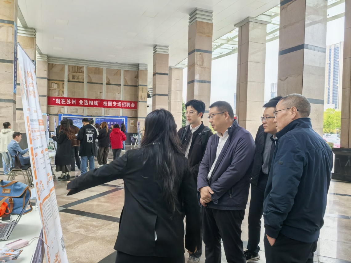 活动当天,与会领导参观了学校大学生双创中心及国家职业教育示范性虚拟现实仿真实训基地,深入了解学校在创新创业教育及实践教学方面的成果。同时,“就在苏州 业选相城”校园专场招聘会同步举行,10家相城区重点企业为毕业生提供500余个工作岗位,为学子搭建广阔的就业平台。