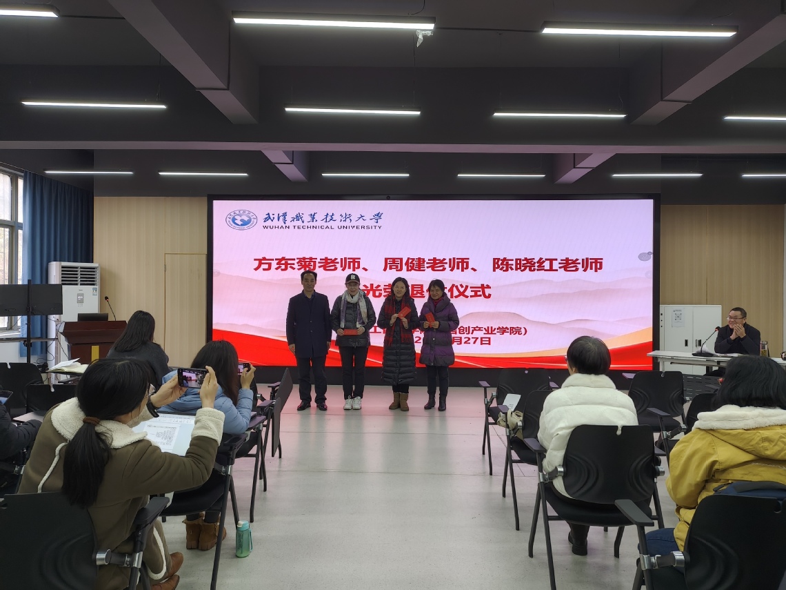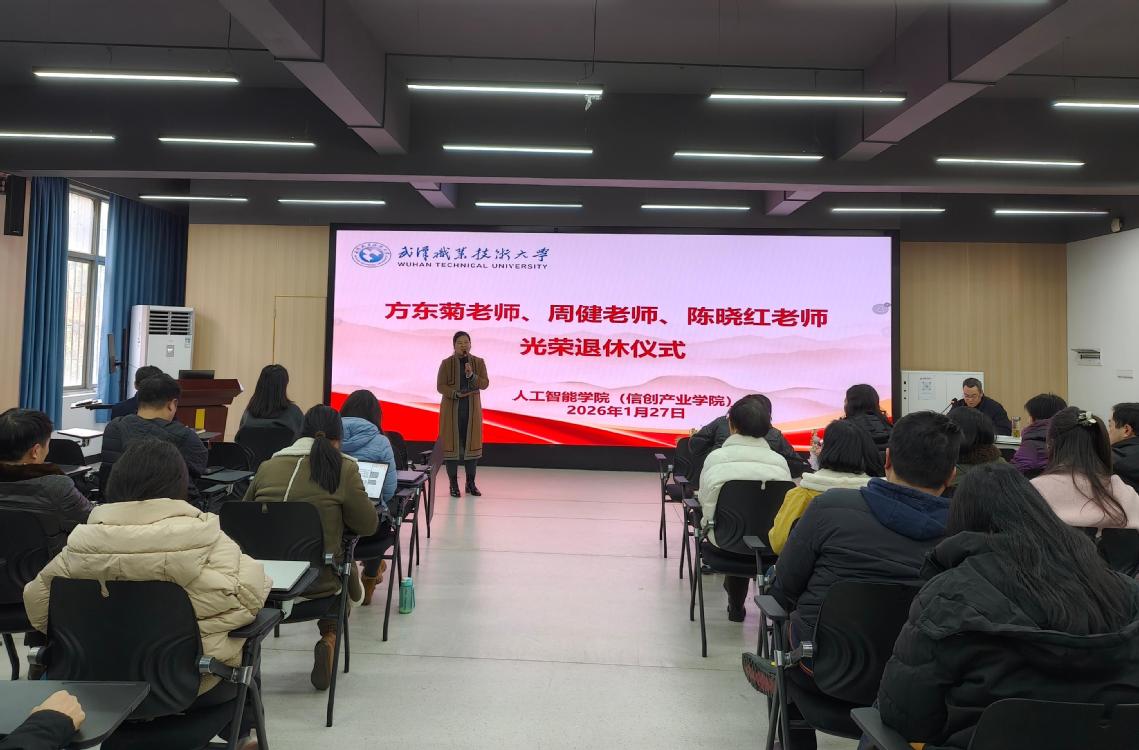 新闻网讯(通讯员 肖渝琪)1月27日,人工智能学院(信创产业学院)在凌峰楼B106会议室为方东菊、周建、陈晓红三位教师举办集体荣休仪式。学院全体教职工齐聚一堂,学校工会常务副主席胡类明、人力资源处副处长王丽、离退休工作处办公室主任汪春莲作为学校职能部门代表参加仪式。仪式由人工智能学院(信创产业学院)党委书记李永林主持。