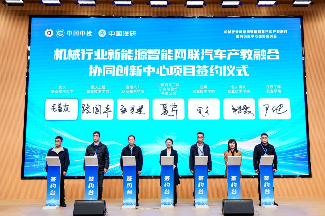 新闻网讯(通讯员 毛善友)3月29日,智能网联汽车产教融合协同创新中心项目启动大会在上海启幕。武汉职业技术大学与中国汽车工程研究院股份有限公司(以下简称“中国汽研”)在会上正式签约,共同成立“智能网联汽车产教融合协同创新中心”。政府相关部门领导、科研院所专家、高校代表及行业龙头企业代表共同见证了这一重要时刻。